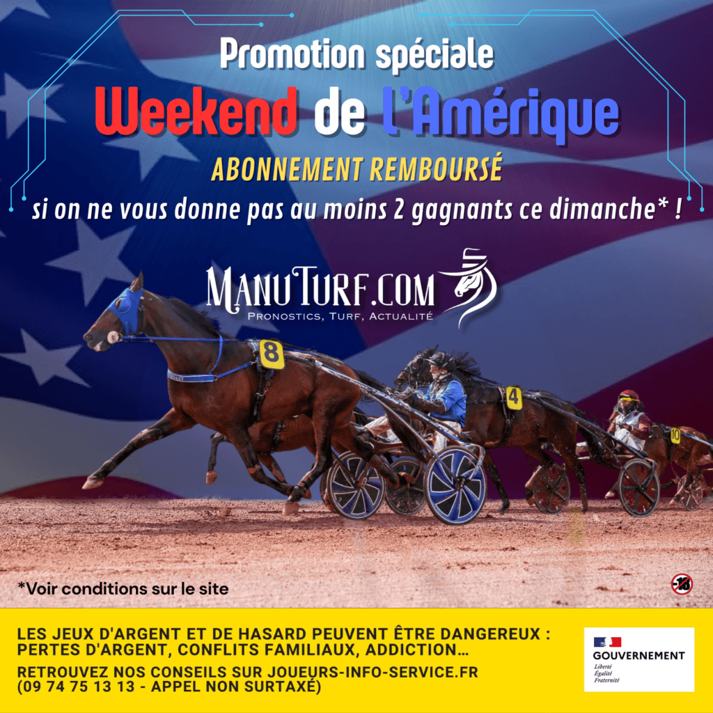 A l’occasion du Prix d’Amérique, pour toutes nouvelles souscription les 24 ou 25 janvier 2026, nous vous remboursons intégralement votre abonnement si nous ne vous donnons pas au moins 2 gagnants lors de la réunion du 25 janvier à Vincennes !*